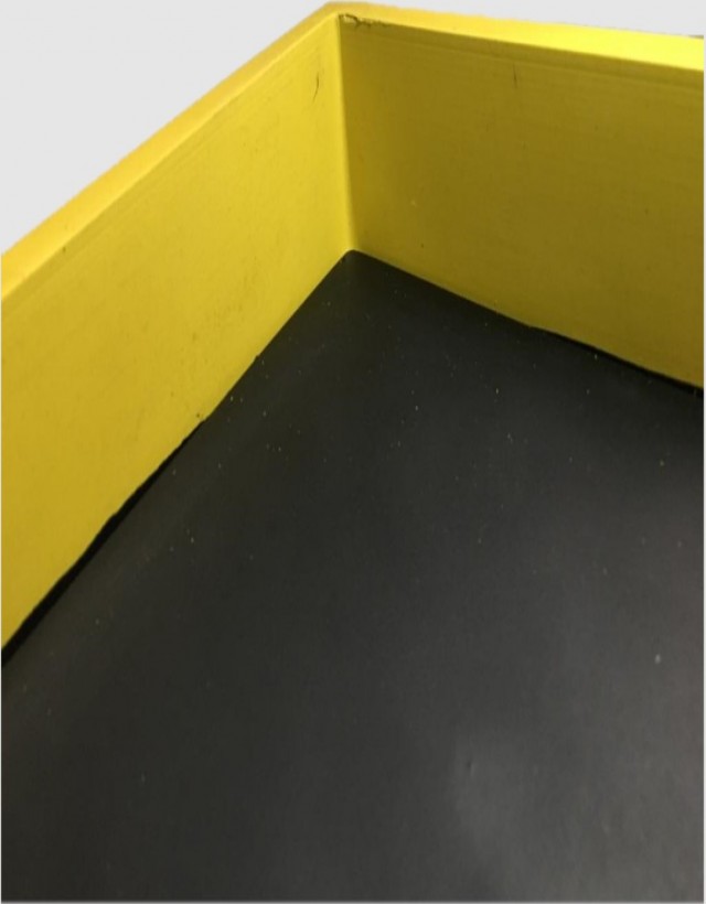 Tapete sanitizante para uso industrial y/o agropecuario, con paredes altas para dar mayor capacidad del liquido desinfectante, permitiendo una efectiva limpieza y desinfección de suelas de zapatos y botas de uso industrial. Ideal para la industria que requieran asegurar inocuidad en sus áreas de trabajo, tales como: Hospitales, centros de salud, laboratorios, industrias farmacéuticas, industria relacionada con la producción de alimentos, granjas y cualquier otra industria que requiera asegurar áreas higienizadas en sus instalaciones. Fabricado en hule SBR. Color Negro y Negro con paredes Amarillas. Capacidad de contener liquido: Aproximadamente con 4 o 5 litros de liquido es suficiente, el tapete puede contener hasta un máximo de 14 litros.