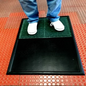 Desinfección y Secado 60 cm x 90 cm x 2 cm Alfombra para secado uso rudo y Pared que impide el paso de la solución al área de secado. Versátil, para gran diversidad de espacios: • Hospitales y Centros de Salud • Clubes y Centros deportivos • Fábricas • Oficinas y comercios • Centros Comerciales • Hogares y Edificios