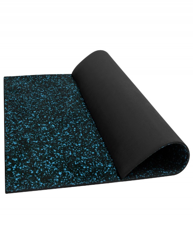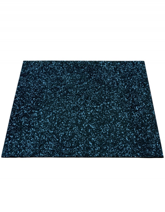 Tapete de hule de color negro y azul con excelente acabado y apariencia, especialmente diseñado para gimnasios y centros de rehabilitación. Dimensiones: L x A x e = 90 cm x 90 cm x 6 mm Material: Hule, Color: Negro y Azul